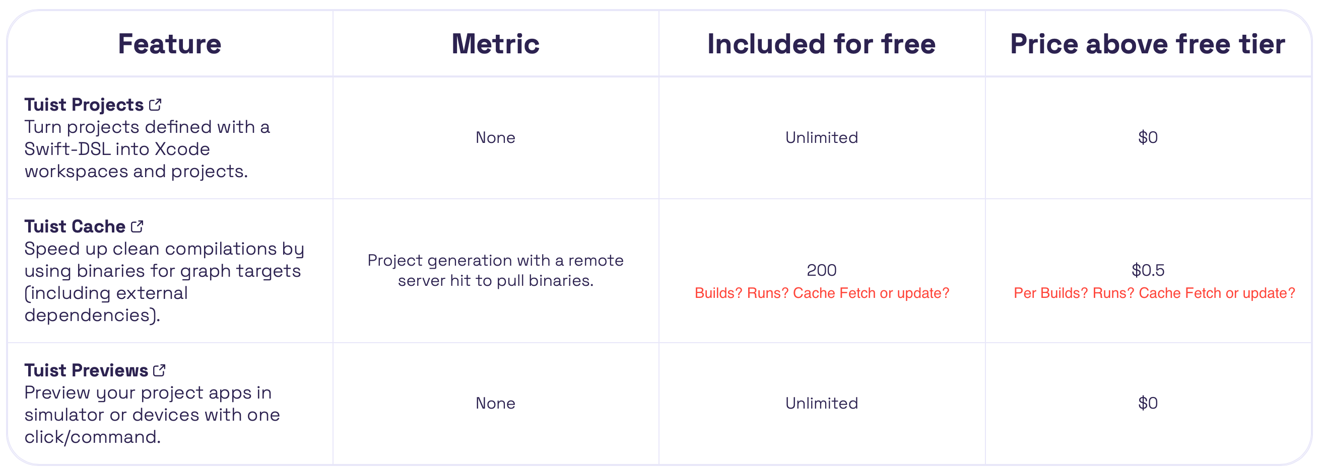 We also took the opportunity to shift Tuist away from the .io domain, which may be phased out, to consolidate our sites—https://cloud.tuist.io and https://tuist.io—under a single domain: https://tuist.dev. We aimed to create a website that embraces the platform in its purest form, avoiding unnecessary build tools or abstractions while ensuring the site is accessible and displays well across platforms. We’re still working on making open graph images more dynamic, but we’ll get there.